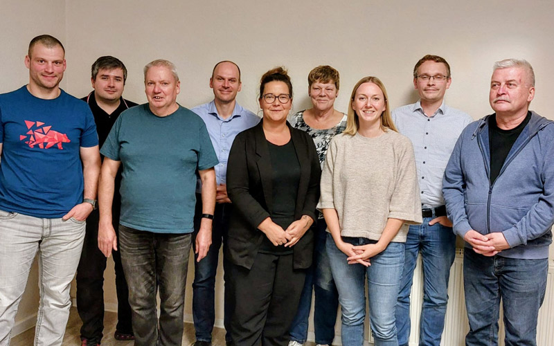 Auf dem Bild von links nach rechts: Mirco Kurzhals (Vorsitzender), Florian Kleint, Bernd Schentschischin, Michael Fritz, Franziska Ohlandt (1. SV), Petra Bartels, Diana Stercl (2. SV), Lennart Harms, Andreas Königstein